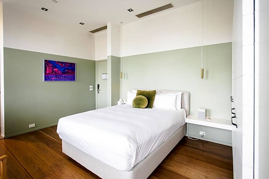 This spacious room features a private balcony overlooking Fitzroy Street, Queen size bed and walk in shower.